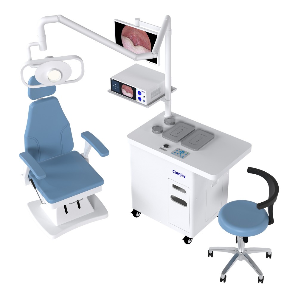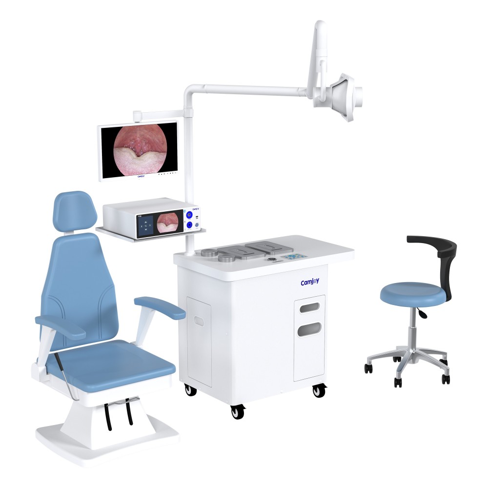 يحول النموذج الرئيسي **CA003** غرفة الفحص إلى مركز تشخيص رقمي. يشمل جميع الأثاث من CA002 لكنه يضيف أحدث تقنيات التصوير. يأتي بشكل قياسي مع **نظام الكاميرا الطبية المنظارية** و**شاشة التشخيص الطبي** لرؤية هياكل الأذن والأنف والحنجرة في الوقت الحقيقي.
