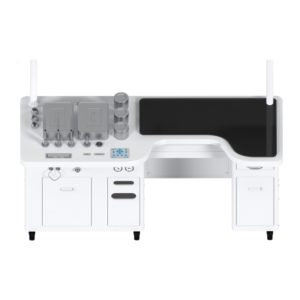 سلسلة الأقراص المدمجة ليست مجرد قطعة من المعدات؛ إنها بيان للجودة. يستخدم تصميمه أعلى درجة من الفولاذ المطلي بالمينا المخبوزة ويتميز بسطح عمل رخامي نظيف مميز مع تفاصيل محسنة. تهدف هذه الوحدة إلى منافسة أناقة التصميم للعلامات التجارية العالمية الكبرى، حيث تقدم بديلا متطورا للعيادات التي تنافس على راحة المرضى وصورتهم المهنية.